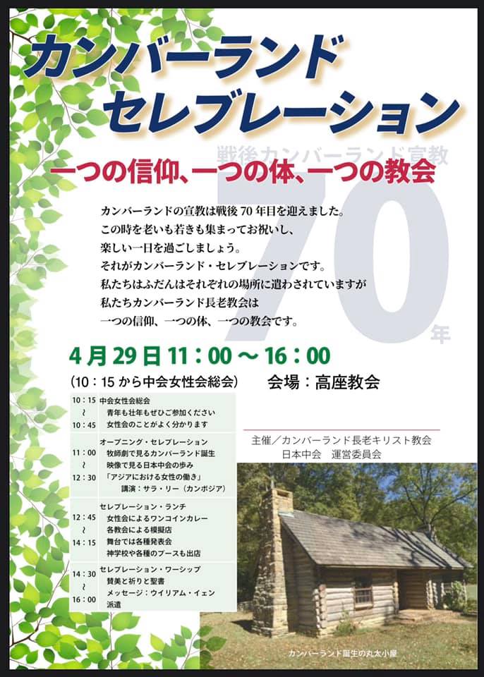 カンバーランドの宣教は戦後70年目を迎えました。この時を老いも若きも集まってお祝いし、楽しい一日を過ごしましょう。それがカンバーランド・セレブレーションです。